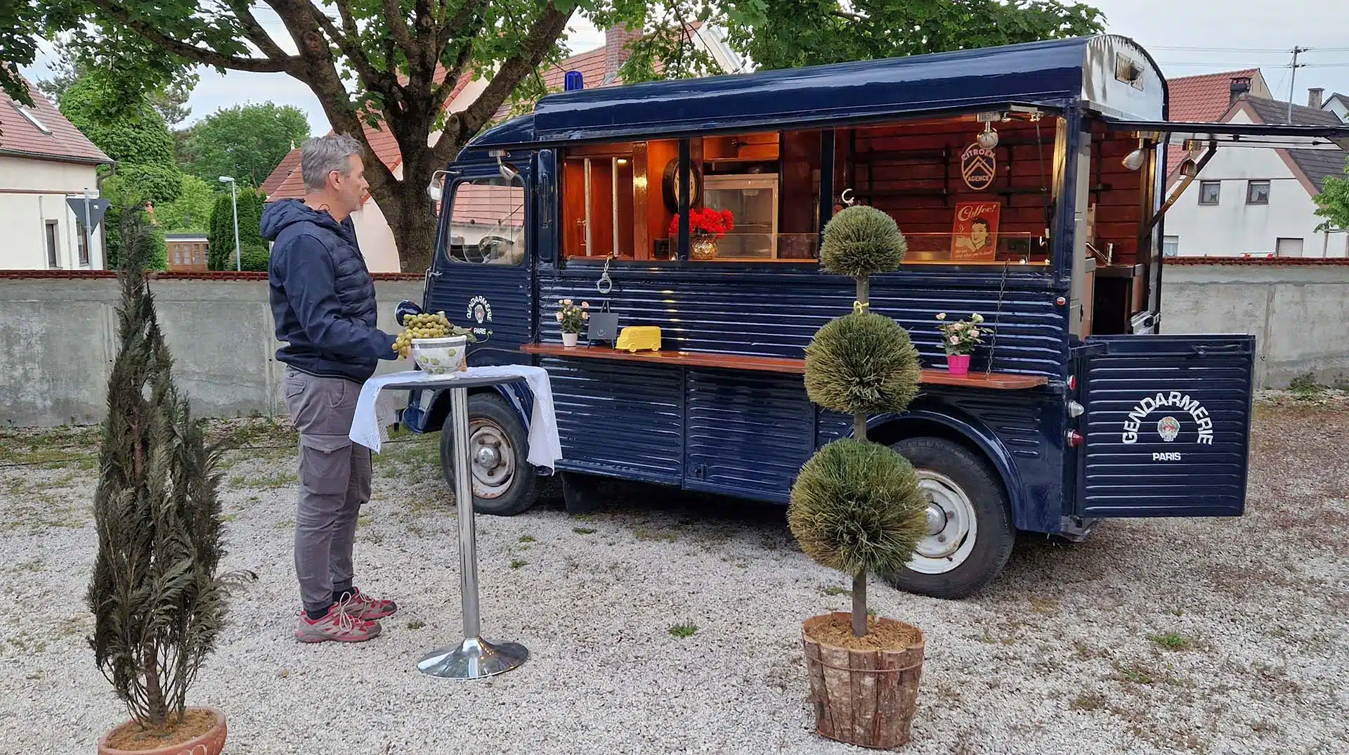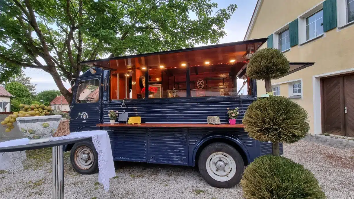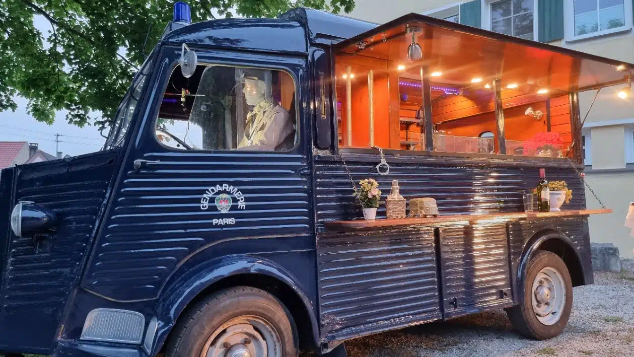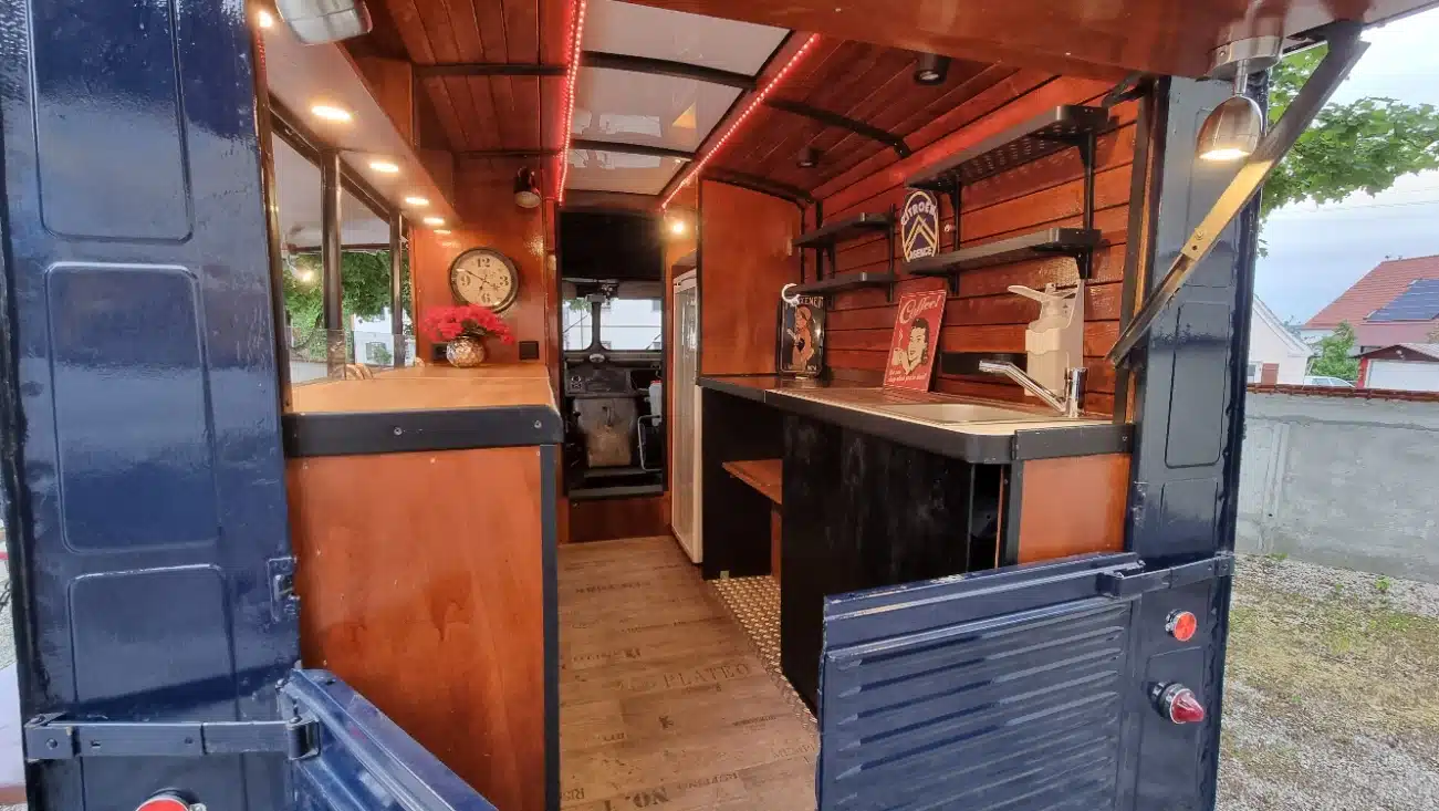 Verwandeln Sie jeden Ort in ein stilvolles Event: Unser liebevoll umgebauter Citroën Typ H im charmanten Retro-Look, ist d e r ideale Verkaufs- oder Promotionstand.